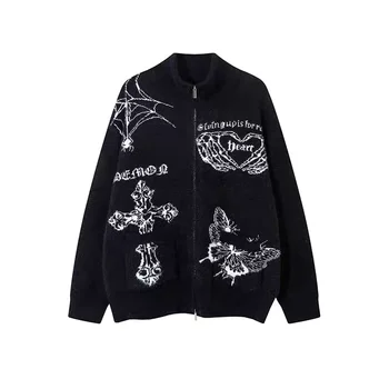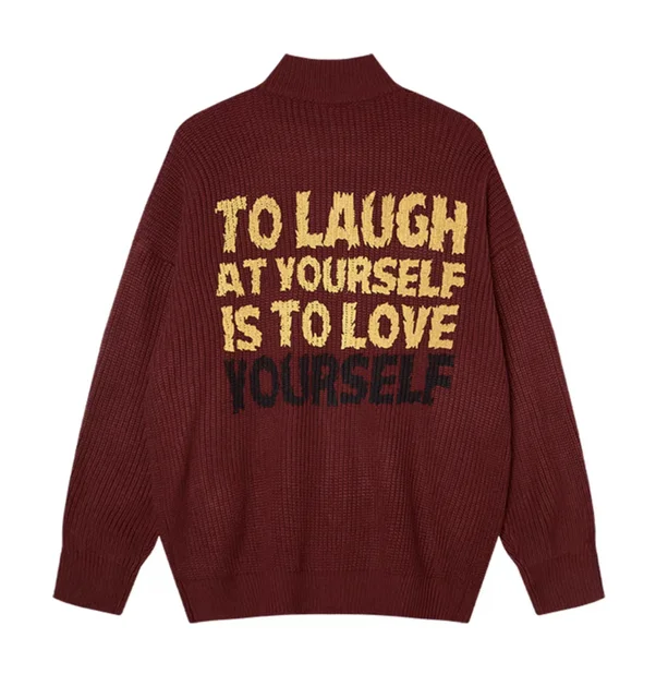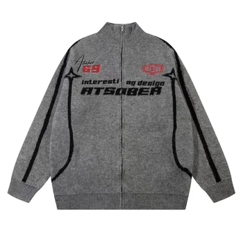 Custom Printed Graphic Pattern Letter Knit Cardigan for Men 100% Cotton Breathable Streetwear Style for Winter