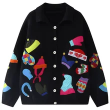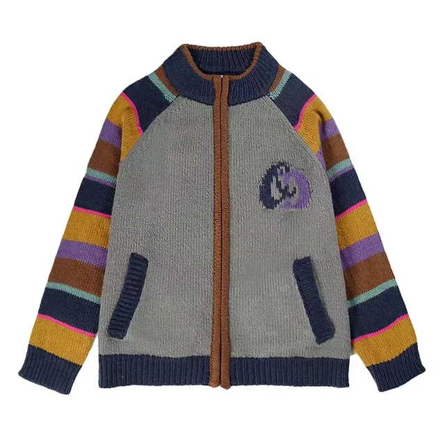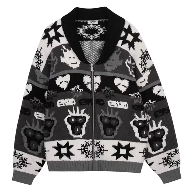 Custom OEM Soft Touch Knitted Cardigan Sweater for Men with Cartoon Pattern and Comfort Fit
