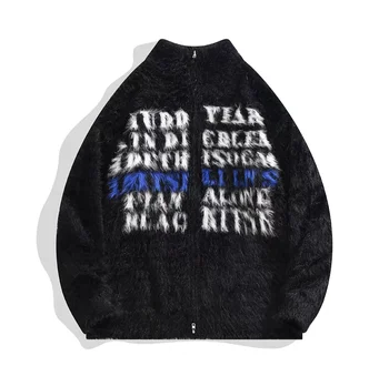 Luxury Men's Knit Cardigan Mohair Jacquard with Zip-up Design Anti-Shrink and Breathable for Daily Wear Warmth