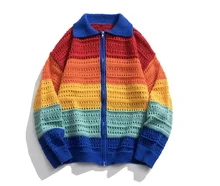 Custom Oversized Men's Fashionable Cardigan Long Sleeve Breathable Fall-Winter Thick Gauge Knitwear Colorful Pattern Competitive