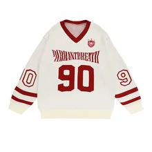 เสื้อสเวตเตอร์ถักผ้าแจ็คการ์ดคอวีสำหรับผู้ชายเสื้อสเวตเตอร์ผ้าถักลำลองกันรอยยับสำหรับฤดูหนาวเสื้อหน้าโลโก้ตามสั่งแนววินเทจ